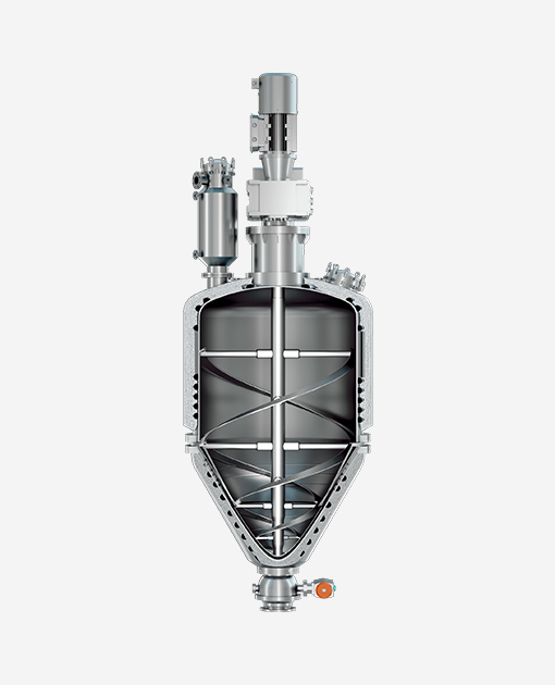 对筒体夹套、锥体夹套、搅拌器通入热媒实现对罐内滤饼的持续加热,cbin仲博网页版此时搅拌器低速顺时针转动,使物料在罐内进行多维运动。 通过全方位的不规则往复运动,完成物料的高效率换热,同时,可向罐内通入热的气源,提升干燥效率。